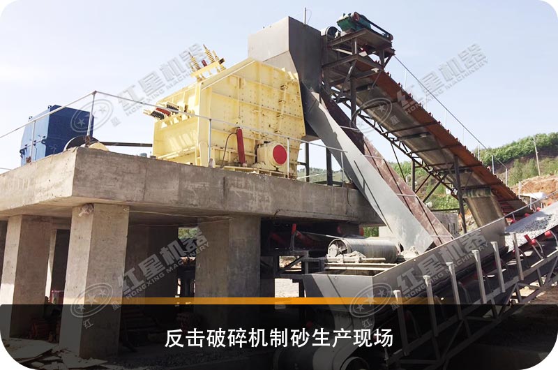 反擊破碎機(jī)生產(chǎn)石灰石機(jī)制砂現(xiàn)場